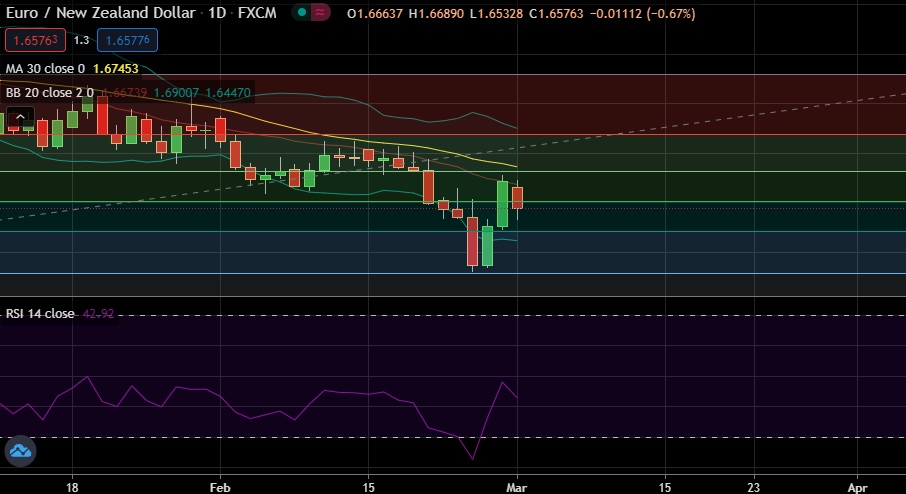 • EUR/NZD declined on Monday as retreat in U.S. Treasuries pushed demand for risk-sensitive currencies like New Zealand dollar.
