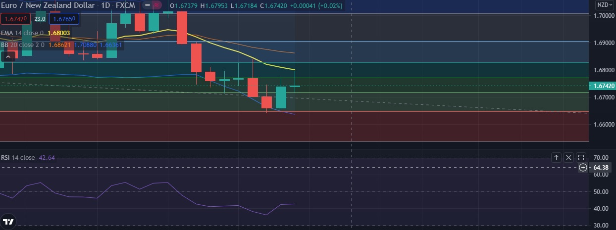 • EUR/NZD dips towards 1.6742, a break and daily close above 1.6800 (14EMA) will accelerate further gains.