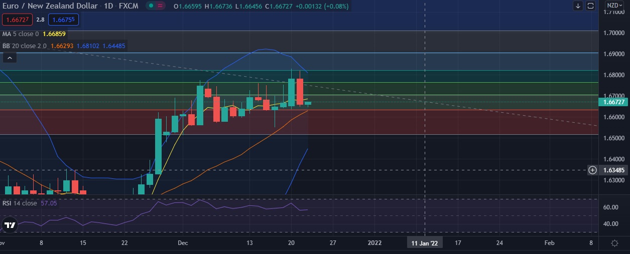 • EUR/NZD declined on Tuesday as investors sought riskier assets despite surging cases of the Omicron coronavirus variant around the world.