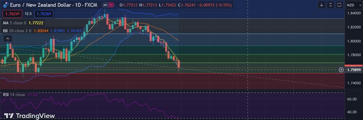 • EUR/NZD slide halts after failing to break at the 23.6% fib support, daily close and break below will accelerate towards 1.7500 level.