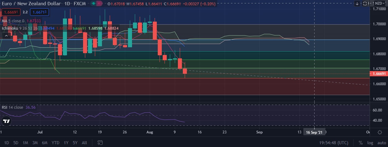 • EUR/NZD could be on the verge of a deeper fall after sliding below the 5-day moving average and 38.2% fib on Wednesday.