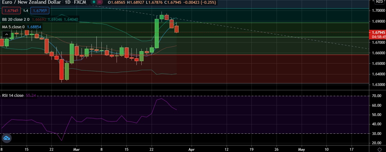 • EUR/NZD declined on Monday as jump in corona virus cases in Europe put renewed pressure on the pair.