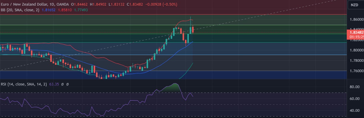 • EUR/NZD declined towards 1.8350 level on Tuesday as traders avoided riskier currencies amid fears of a possible recession in the United States.