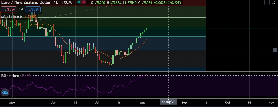 • EUR/NZD rallied on Wednesday as euro was boosted by economic data pointing return of growth in eurozone bloc.