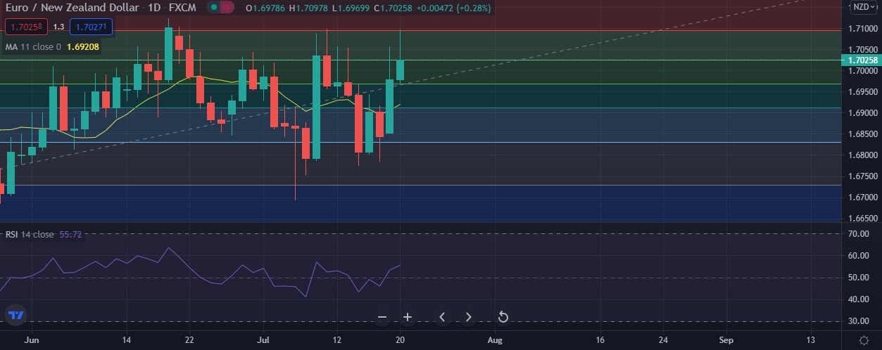 • EUR/NZD rose higher on Tuesday as growing concerns about the impact of the Delta COVID-19 variant on the global economic recovery hit risk-sensitive currencies like kiwi dollar.