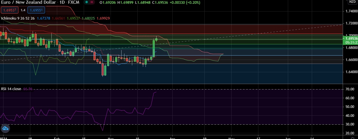 • EUR/NZD rose higher on Wednesday as euro was boosted by weaker New Zealand dollar and upbeat German factory data.