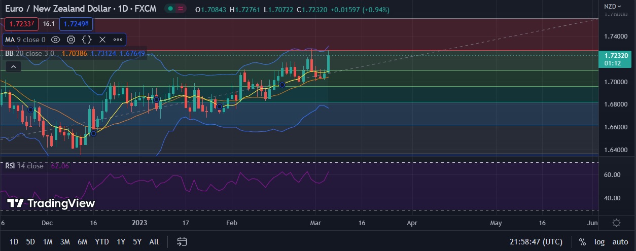 • EUR/NZD strengthened on Monday as prospects of rate hikes by ECB boosted euro against kiwi dollar .