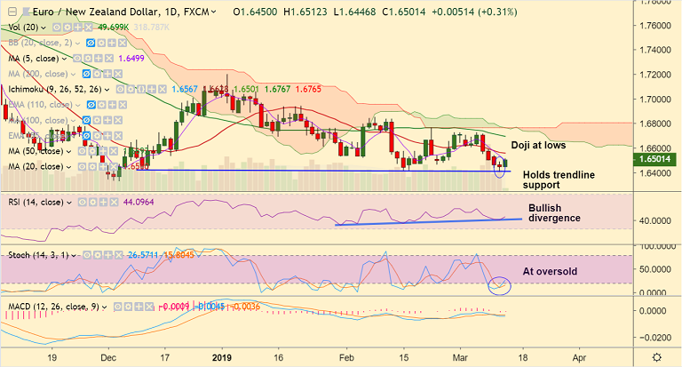 - EUR/NZD is trading at 1.6503 at 0826 GMT, up 0.33% at the time of writing.