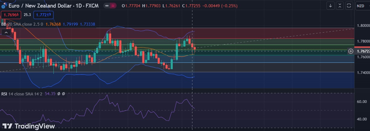 • EUR /NZD was last trading at 1.7696. The pair staged recovery after meeting support at this level 1.7622 (61.8% fib).