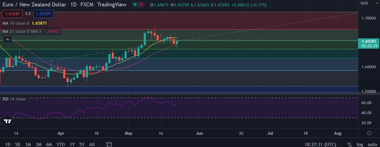 • EUR/NZD strengthened on Monday after ECB indicated a move from negative interest rates.