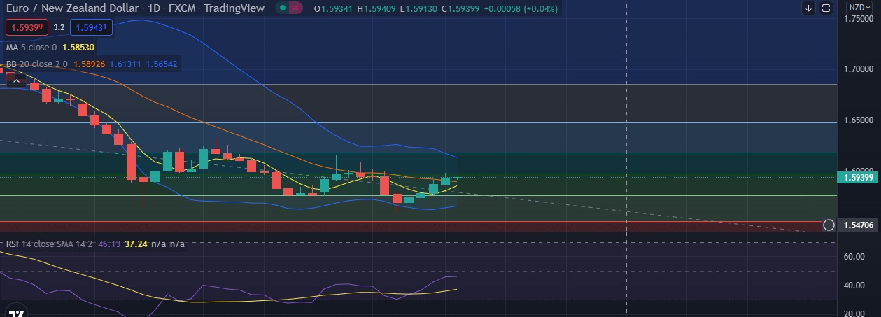 • EUR/NZD bulls have to contend with strong resistance at 1.59723 (50%fib). If EUR/NZD longs overcome that level, tests of 1.6145 (Higher BB) is likely.