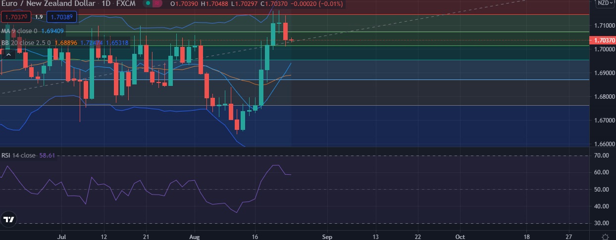 • EUR/NZD declined on Monday as increased risk sentiment and tempered hawkish expectations for Fed Chair Jerome Powell's Jackson Hole speech on Aug 27 hinder the pair’s upside progress.
