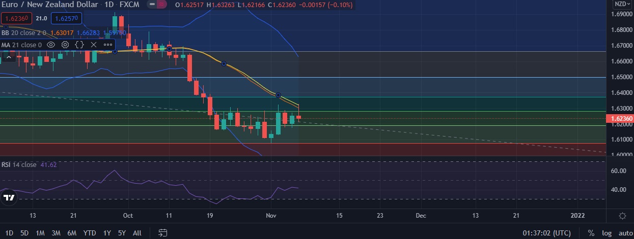• EUR/NZD fell to 1.6210 before steadying around 1.6236 in late US session.