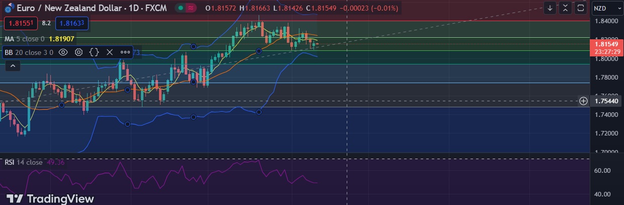 • Strong support is seen at 1.8088(50% fib) and break below could take the pair towards 1.8052(Lower BB ).