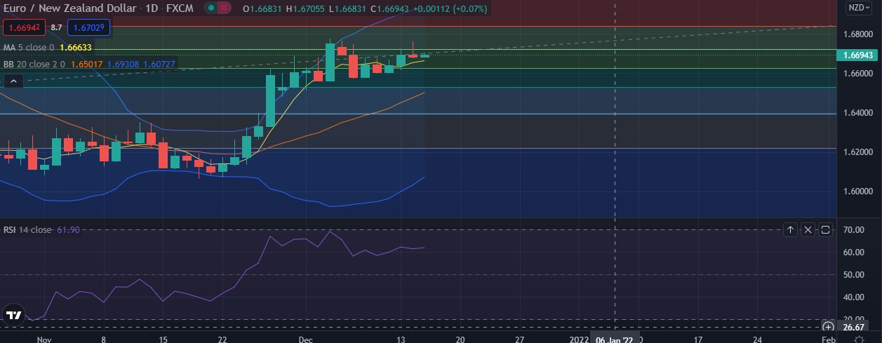 • EUR/NZD strengthened on Tuesday as worries about the Omicron variant dampened and weaker commodities prices weighed on risk sensitive kiwi dollar.