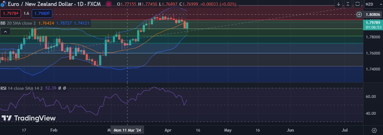 • Strong support is seen at 1.7897 (38.2%fib) and break below could take the pair towards 1.7829 (Lower BB )