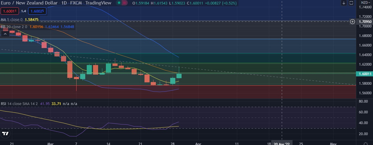 • EUR/NZD strengthened on Tuesday as the euro's was boosted after Ukrainian and Russian negotiators announced progress in their peace talks.