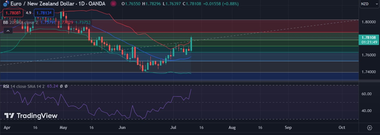 • At GMT 19:01, the pair was trading up 0.22 percent at 1.7811 after reaching daily high at 1.7828.