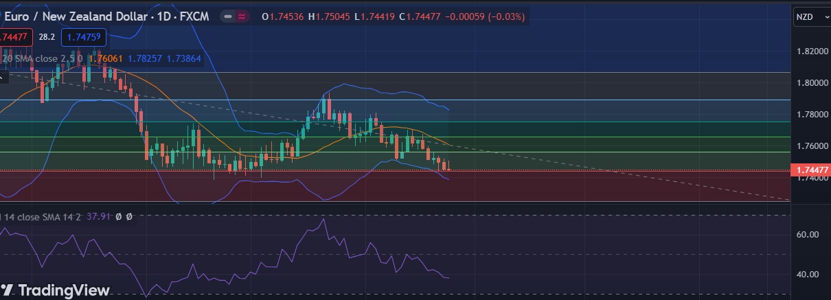 • EUR/NZD dipped to hit daily low at 1.7448 . Sustained break below 23.6 % fib support will push the pair towards 1.7350 level