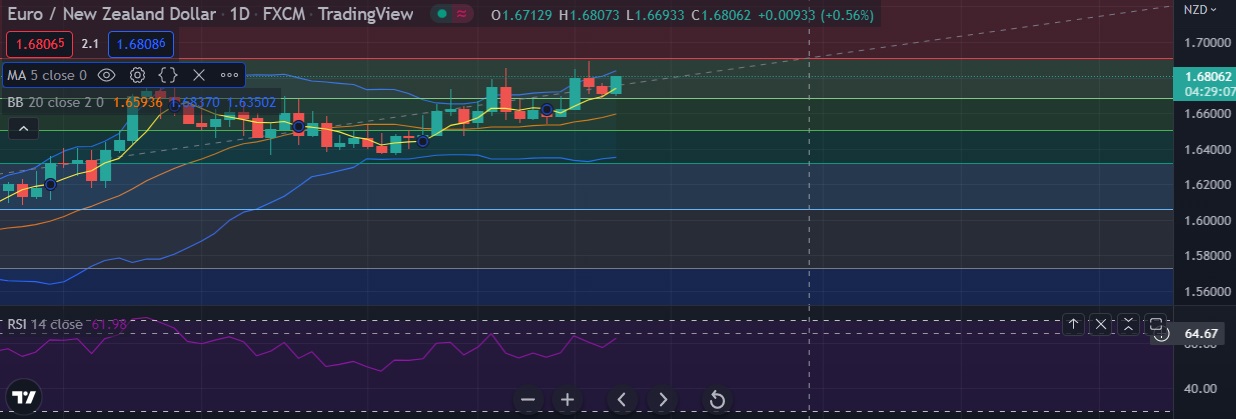 • EUR/NZD steadied above 1.6800 on Monday as investors focused on the European Central Bank's annual forum on central banking in Portugal .