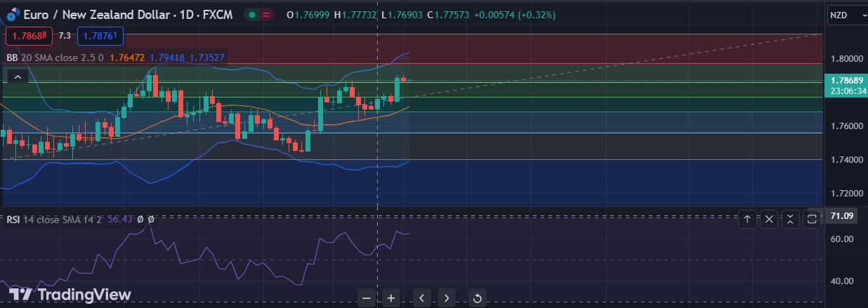 • EUR/NZD has seen a 1.7855-1.7891 range on Wednesday, It was last trading at 1.7871.