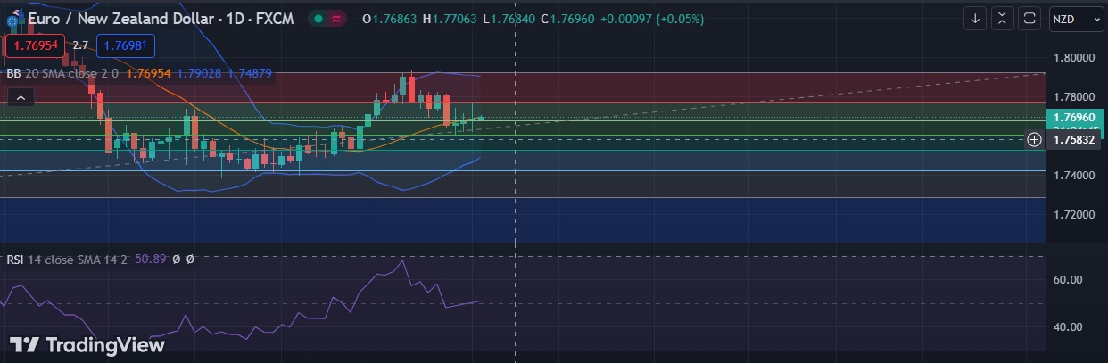 • EUR/ NZD traded as high as 1.7772 before retreating slightly to trade at 1.7694.A rally towards 1.7850 level is possible if bulls overcome23.6%fib resistance .