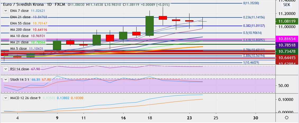 FxWirePro: EUR/SEK consolidates above 11.000, likely to resume weakness