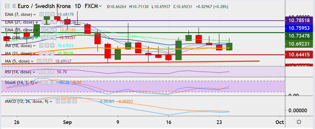 - EUR/SEK trades 0.3 percent up at 10.6927, having hit a high of 10.7563 on Thursday, its highest since September 10.