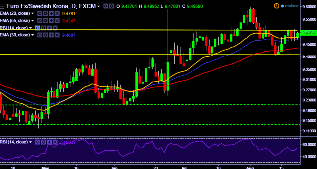 - EUR/SEK is currently trading around 9.4939 levels.