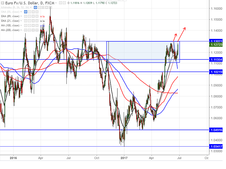 - The near term support stands at 1.11690 (21 EMA) in the daily chart and any break below will drag the pair till 1.1100/1.1050/1.1000.