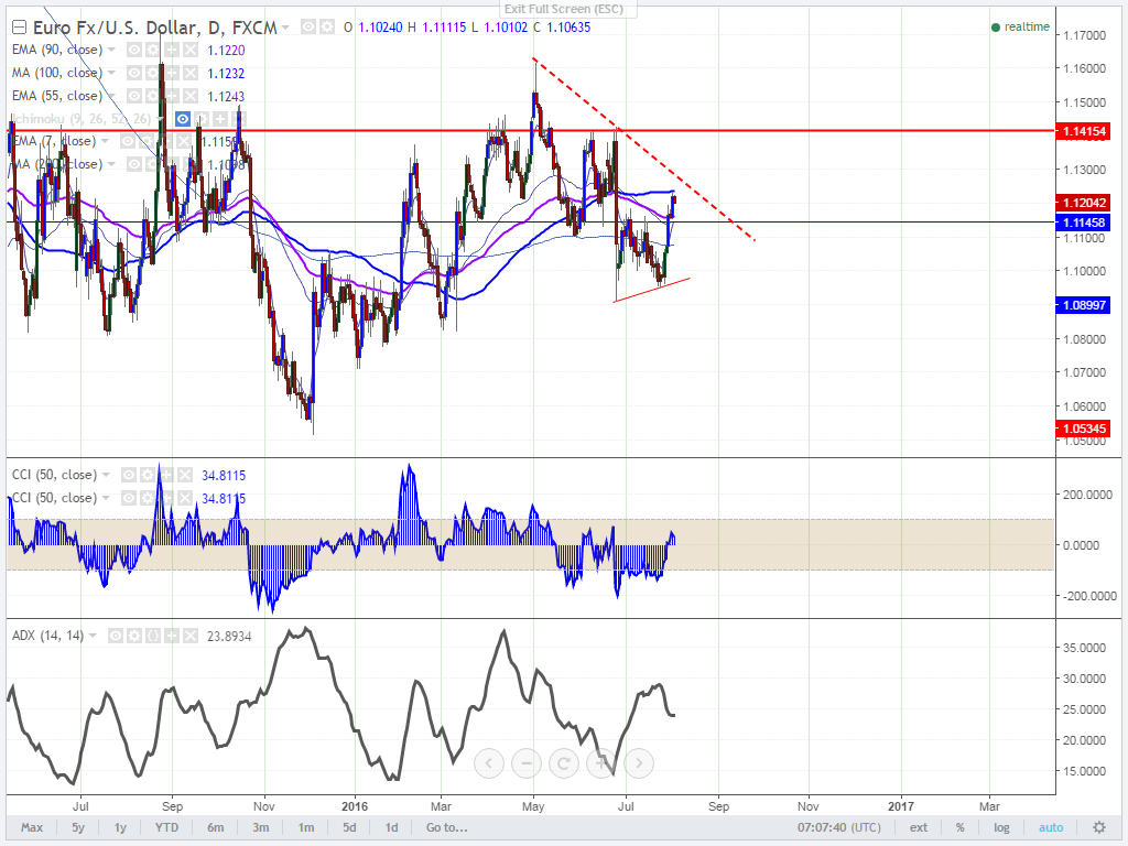- EUR/USD should break above 100 day SMA for further bullishness. Any break above 1.12380 will take the pair to next level till 1.12650/1.1300.