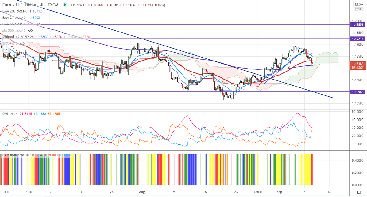 EURUSD lost more than 0.75% from a minor top 1.19070 made after US dismal jobs data. The cautious market mood and spread of delta variant coronavirus have increased demand for safe-haven assets like the US dollar. The weak Eurozone and German ZEW economic sentiment also dragging the single currency. Investors await the European Central bank policy meeting tomorrow for further direction. EURUSD hits an intraday low of 1.18162 and is currently trading around 1.18237.