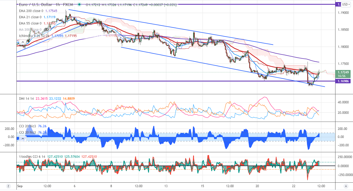 EURUSD declined sharply yesterday after hawkish US Fed monetary policy. Fed has kept its rates unchanged at 0% to 0.25% and maintains its $80 billion treasury buying program as expected. The central bank said bond tapering will start by November 2021 and a rate hike may come in 2022. The pair hits an intraday high of 1.17326 and is currently trading around 1.17287. Markets eye US Initial jobless claims and flash manufacturing index for further direction.