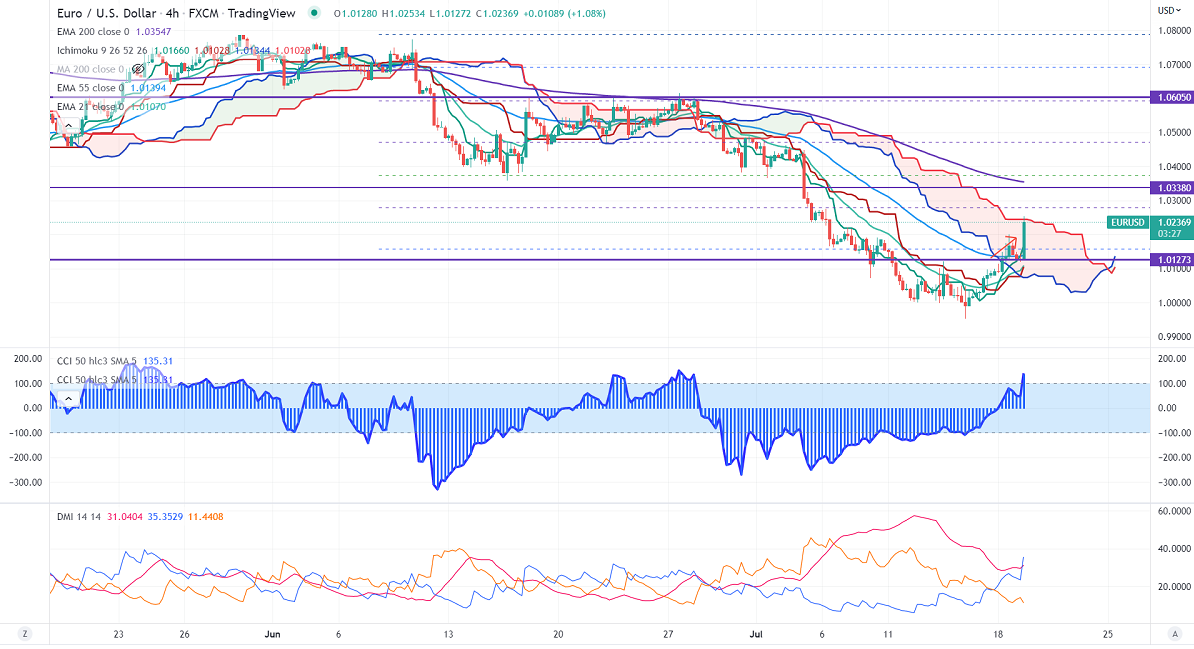 EURUSD hits an intraday high of 1.02534 and is currently trading around 1.02298.