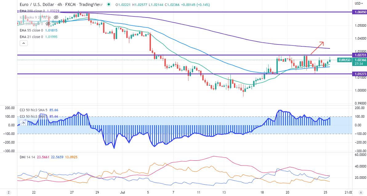 The pair showed a nice pullback despite weak German IFO data. The Ifo business climate index dropped to 88.6 in July compared to a forecast of 90.2, the lowest level in more than two years. The sell-off in US treasury yields also puts pressure on the US dollar. According to the CME Fed watch tool, the probability of a 100 bpbs rate hike in Jul dropped to 22.5% from 29.1% a week ago. It hits an intraday high of 1.02577 and is currently trading around 1.02391.