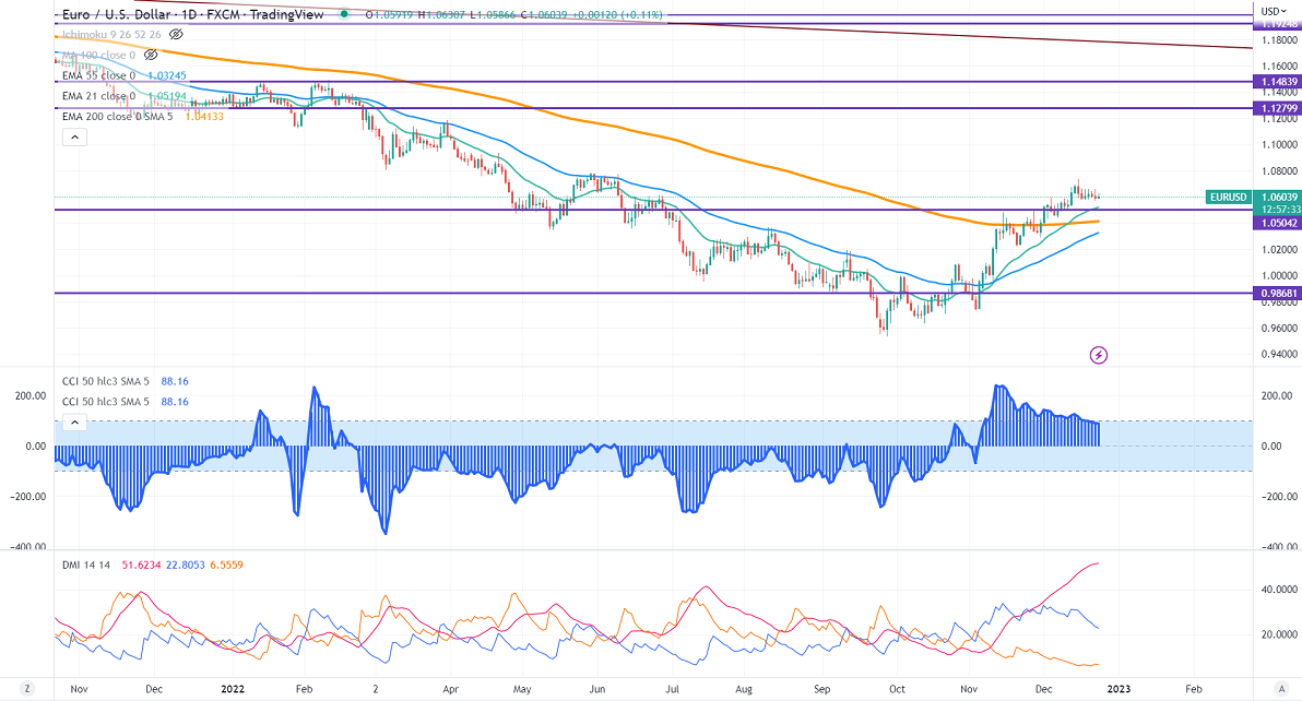 EURUSD consolidates in a narrow range between 1.06586 and 1.05700 for the past three days on the Christmas holiday mood. The US dollar index gained momentum on upbeat GDP data. The US economy grew 3.2% between Jul and Sep, above the estimate of 2.9%. Markets eye the US core PCE price index for further direction. It hits an intraday high of 1.06307 and is currently trading around 1.06044.