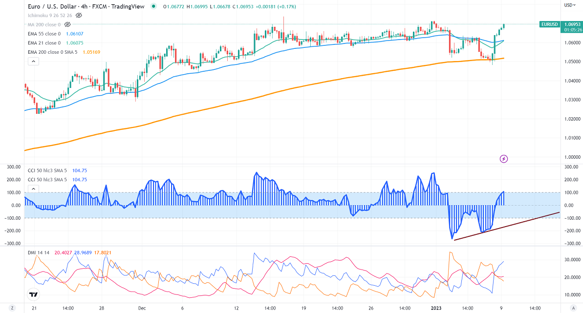 EURUSD surged more than 200 pips after mixed US NFP data. The US dollar dropped sharply on hopes of a dovish fed rate hike in the coming months. The decline in average hourly earnings pushed the Euro higher. It hits an intraday high of 1.06978 and is currently trading around 1.06941.