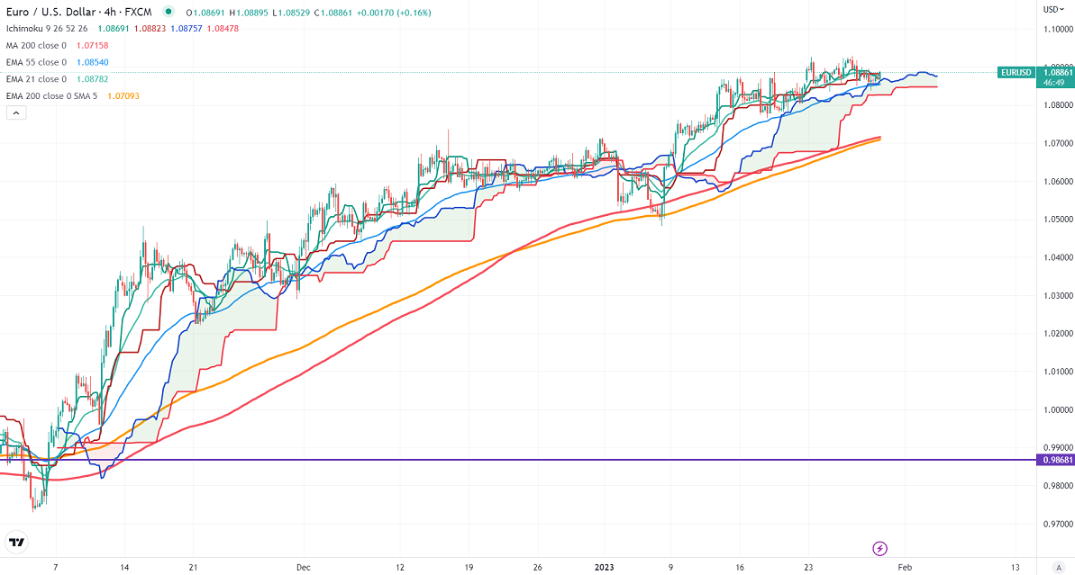 The pair is trading below short-term (21EMA) and above 55 EMA and long-term (200-EMA) in the 4-hour chart. Any break below 1.08350 confirms intraday bearishness, a dip to 1.0800/1.07600 is possible. The near-term resistance is around 1.09000. The breach above will push the pair to 1.0950/1.1000.