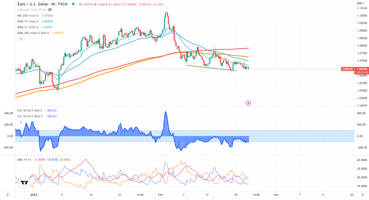 The pair is trading below short-term 21 EMA, 55 EMA, and long-term (200-EMA) in the 4-hour chart. Any break above 1.0700 confirms intraday bullishness; a jump to 1.07350/1.0760/1.0800 is possible. The near-term support is around 1.0640. The breach below will drag the pair to 1.0600/1.0525.