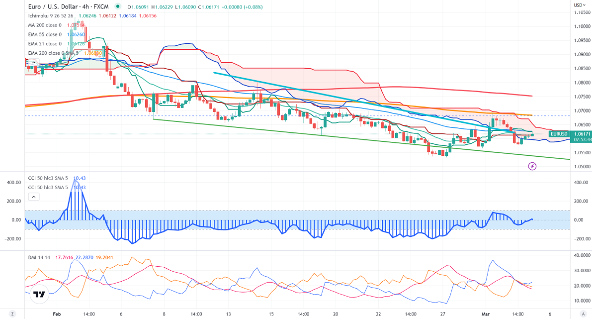 The pair is trading below short-term 21 EMA, 55 EMA, and long-term (200-EMA) in the 4-hour chart. Any break below 1.05700 confirms intraday bearishness; a dip to 1.0530/1.0500 is possible. The near-term resistance is around 1.0660. The breach above will push the pair to 1.0700/1.08000/1.08850.