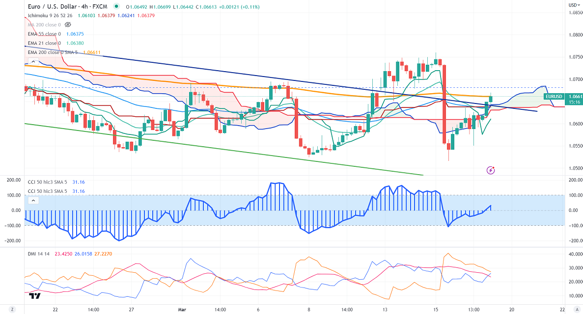 EURUSD extending its bullish trend on easing market sentiment. The European Central bank has hiked rates by 50 basis points and said that it is ready to support banks if needed. Dovish Fed expectations and eleven of the biggest banks in the US announced a $30 billion rescue plan for First republic bank to support Euro at lower levels. It hits an intraday high of 1.06699 and is currently trading around 1.06613.
