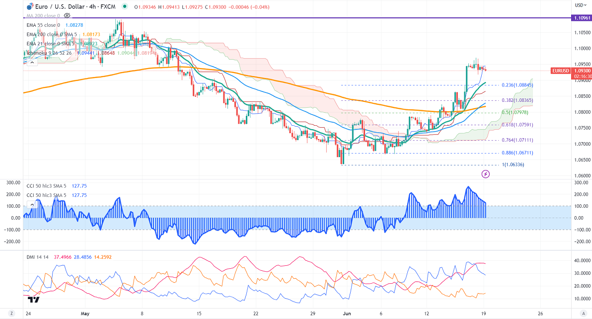 EURUSD gained momentum after ECB monetary policy the previous week. The central bank hiked rates by 25 bpbs to 3.50%, the highest since 2001. It has also revised inflation projections for 2023 and 2024. It hits a high of 1.09705 and is currently trading around 1.09311.