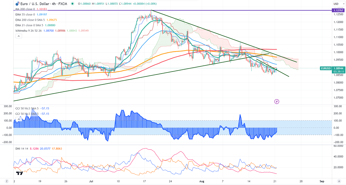 The pair trades below short-term 21 EMA, 55 EMA, and long-term (200-EMA) in the 4-hour chart. Any indicative break below 1.0830 confirms further bearishness: a decline to 1.0760/1.0700 is possible. The near-term resistance is around 1.0920. The breach above targets 1.0950/1.1000/ 1.1070/1.1100/1.1150.