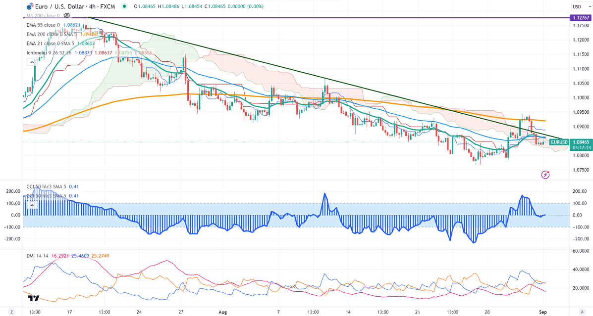 The pair trades below short-term 21 EMA, 55 EMA, and long-term (200-EMA) in the 4-hour chart. Any indicative break above 1.0880 confirms intraday bullishness, a jump to 1.0935/1.0960/1.1000 is possible. The near-term support is around 1.0800. The breach below targets 1.07600/1.0700/1.0660.