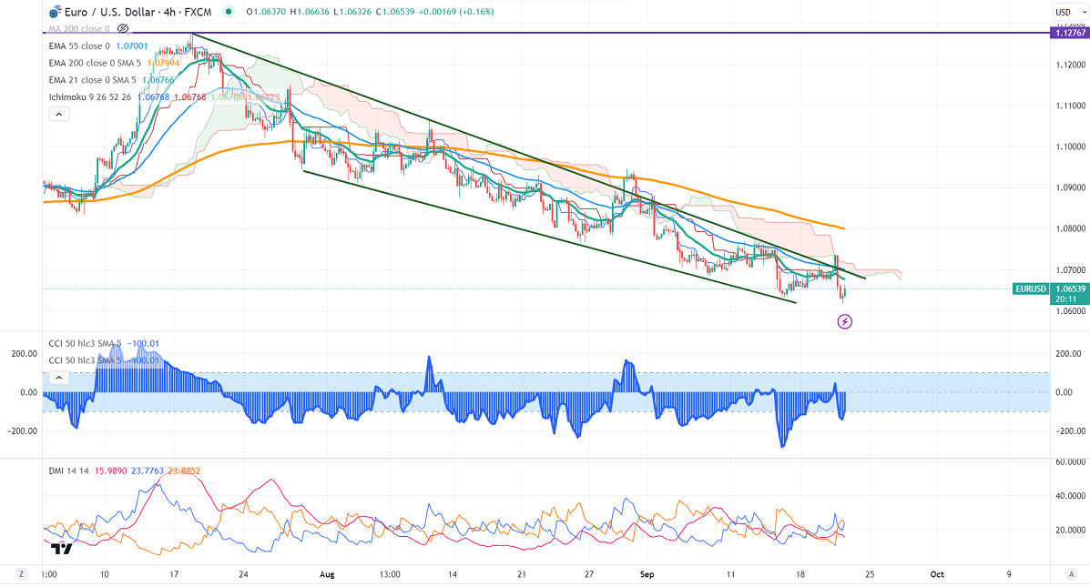 EURUSD declined sharply after the US Fed monetary policy. It hit a low of 1.06167 yesterday and is currently trading around 1.06553.