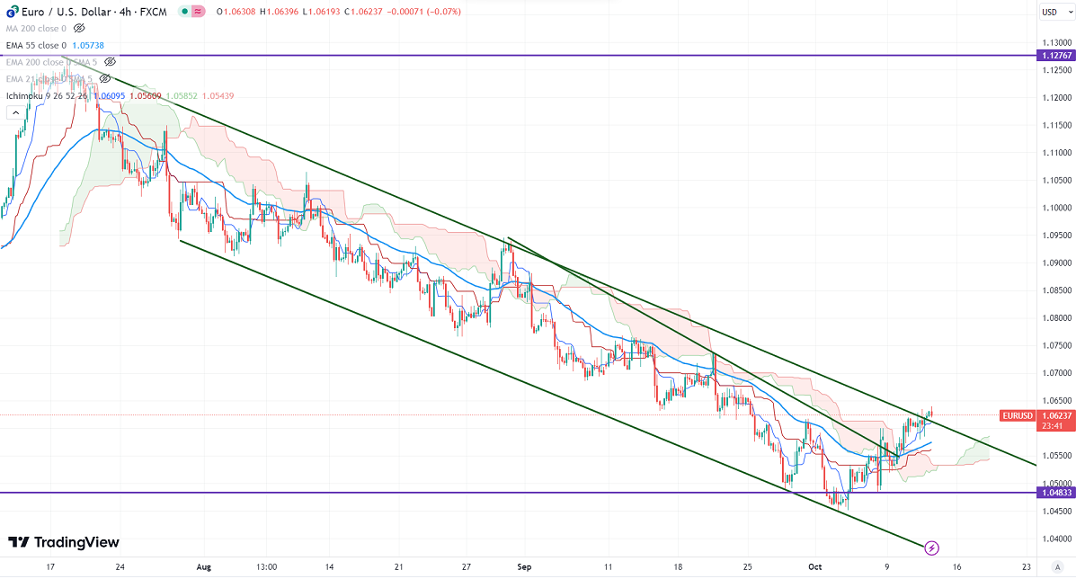 The pair trades above short-term 21 EMA, 55 EMA, and below long-term (200-EMA) in the 4-hour chart. Any break above 1.0660 confirms further bullishness. A jump to 1.0700/1.07368 is possible. The near-term support is around 1.0570, and any breach below targets is 1.0520/1.04800. Bullish invalidation only if it breaks below 1.0440.