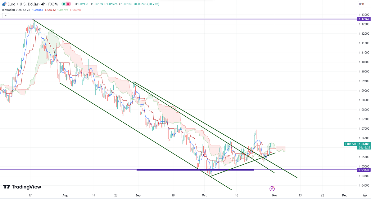EURUSD showed a nice jump on upbeat market sentiment. It hit a high of 1.06253 yesterday and is currently trading around 1.06093.