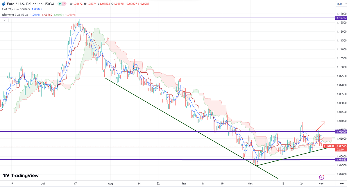 EURUSD pared most of its gains ahead of Fed monetary policy. It hit a high of 1.06749 yesterday and is currently trading around 1.05590.