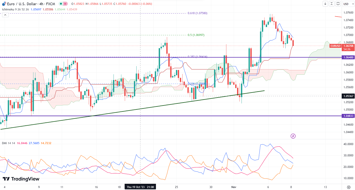 EURUSD pares some of its gains on a cautious mood. It hit a low of 16640 yesterday and is currently trading around 1.06755.
