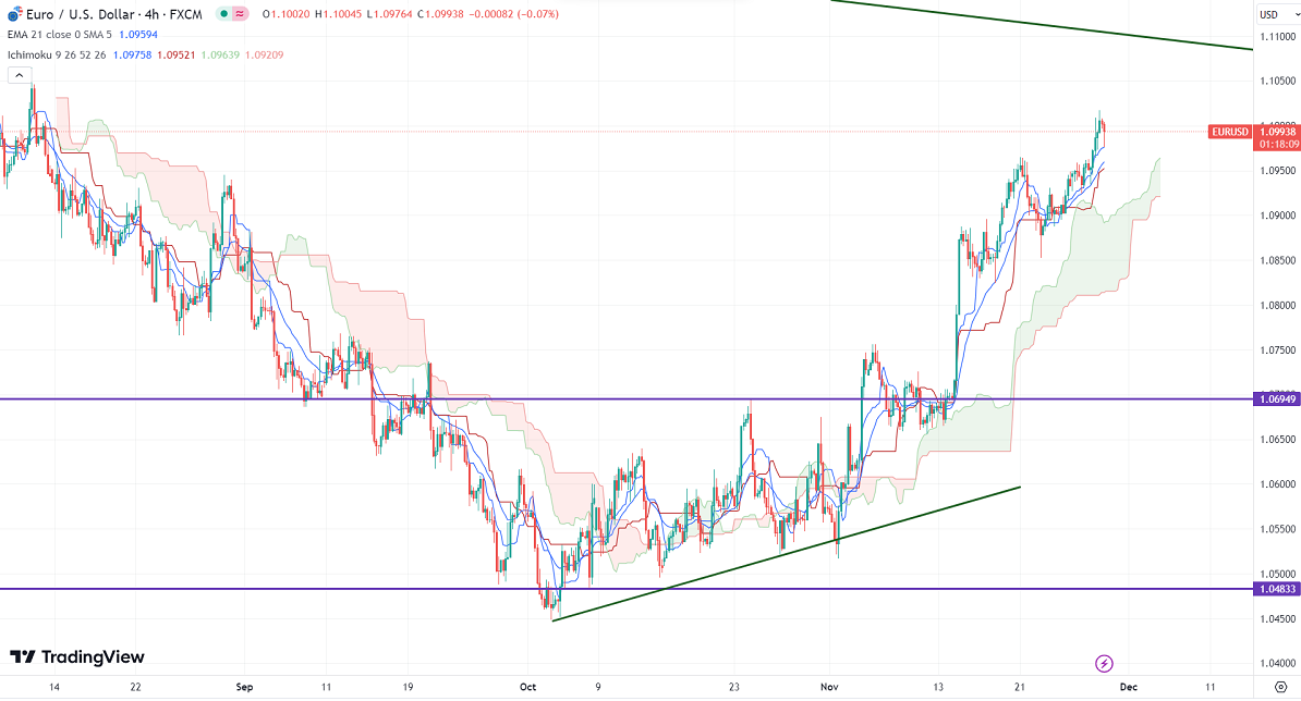 The pair trades above short-term 21 EMA, above 55 EMA, and long-term (200-EMA) in the 4-hour chart. Any break above 1.1020 confirms further bullishness. A jump to 1.1070/1.1100 is possible. The near-term support is around 1.0950 and any breach below targets is 1.0900/1.0835/1.0800/1.0760. Bullish invalidation only if it breaks below 1.0440.